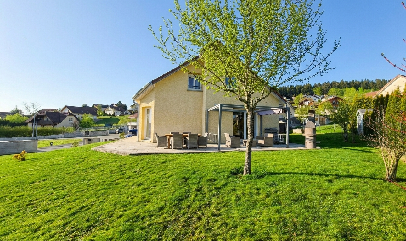 Vous profiterez d'un espace vert facile d'entretien avec place de parking privative et d'une terrasse idéale pour vos petits-déjeuners au soleil ou vos soirées d'été face à la nature, avec un panorama qui change au fil des saisons, offrant une tranquillité absolue.