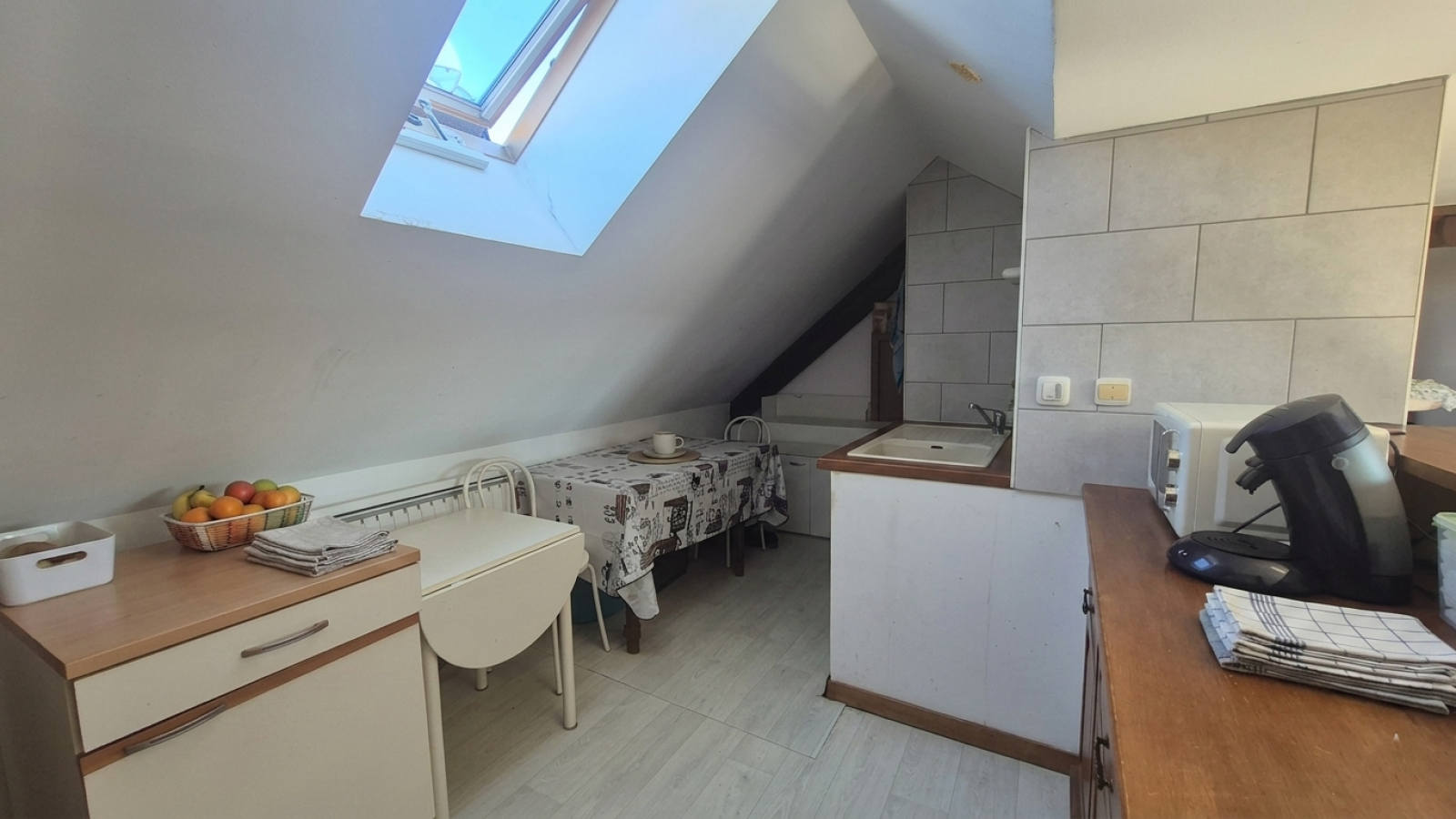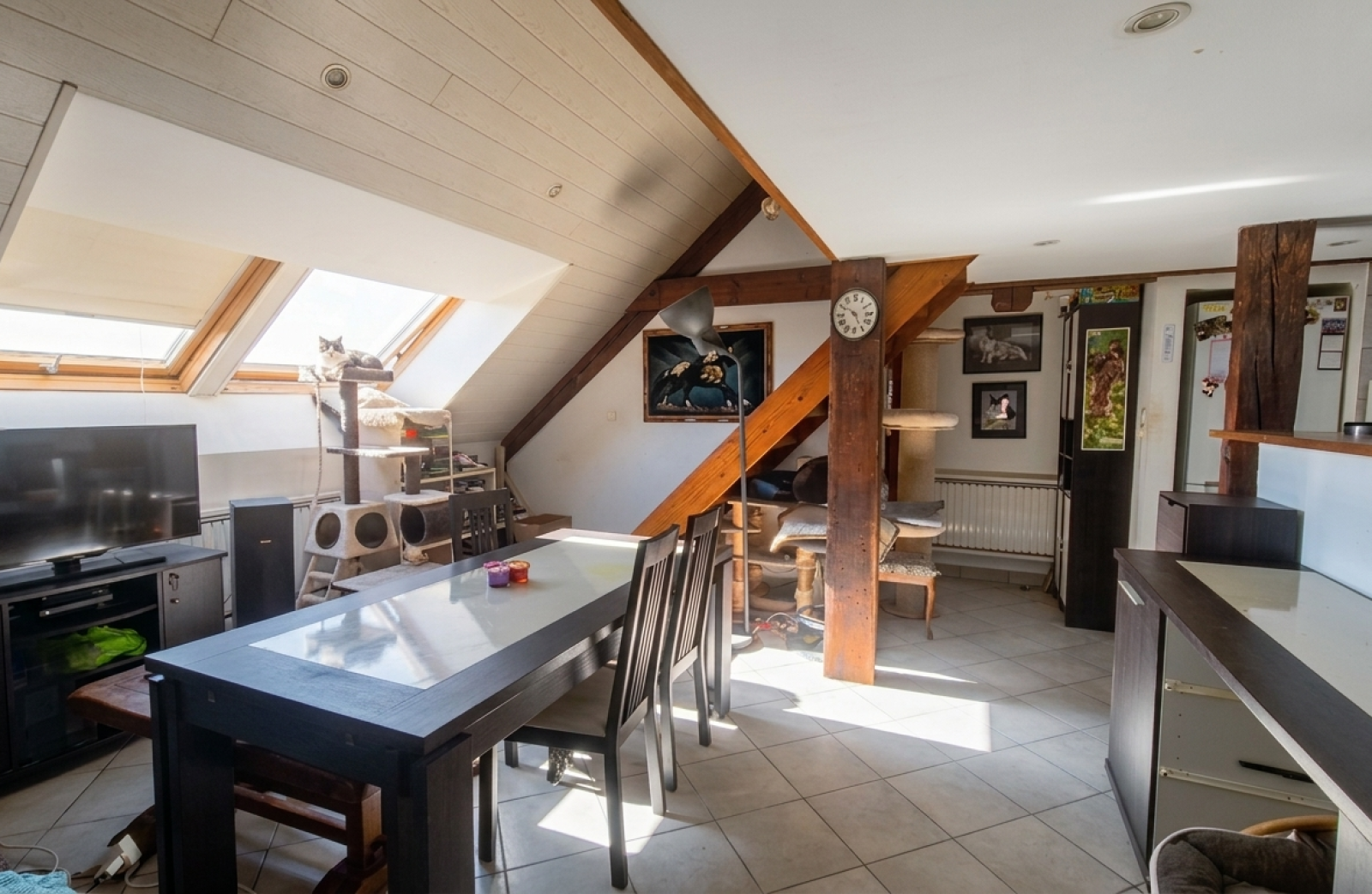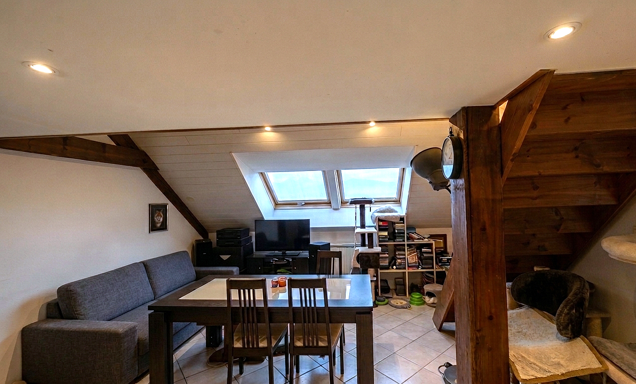 CHARQUEMONT Situé dans une petite copropriété de 3 logements, cet appartement sous les combles de 52m² Loi Carrez ou 89m² au sol saura vous séduire par sa vue dégagée et ses volumes atypiques en duplex avec mezzanine.