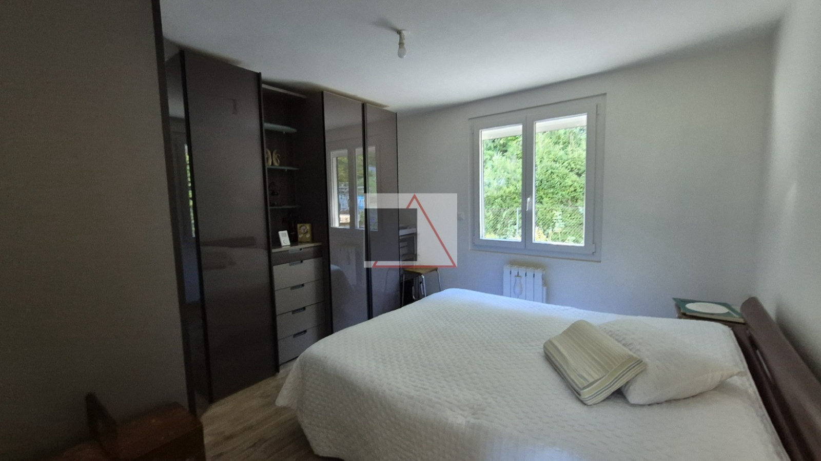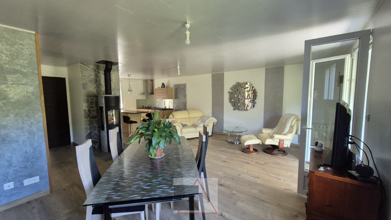 Située sur un joli terrain arboré de +11 ares, maison de plain-pied très bien entretenue composée d'une agréable pièce de vie avec cuisine aménagée et équipée avec poêle à bois récent, cette pièce donne accès à une véranda d'environ 16m² avec vue dégagée sur la nature. Cette maison dispose de 3 chambres dont 2 avec grands placards, une salle de bains avec baignoire balnéo et douche, un WC, une lingerie-cellier, un atelier chauffé, une pièce débarras et un garage avec accès au grenier non aménageable.