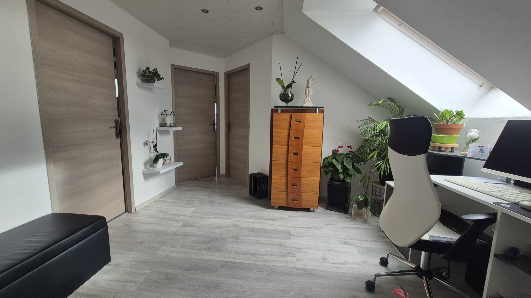 Le coin nuit se compose de 4 belles chambres, deux salles d'eau sont mises à disposition pour le confort de toute la famille. Une mezzanine avec coin bureau complète cet espace, offrant un espace supplémentaire pour le télétravail ou les loisirs.