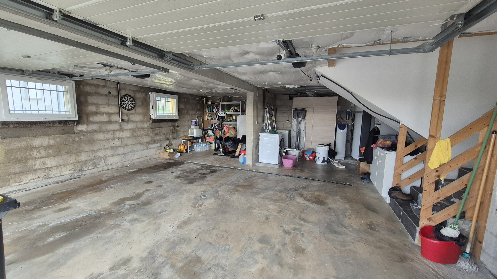 Le double garage vous permettra de stationner vos véhicules en toute sécurité. Le terrain arboré de 840 m² saura également vous séduire!