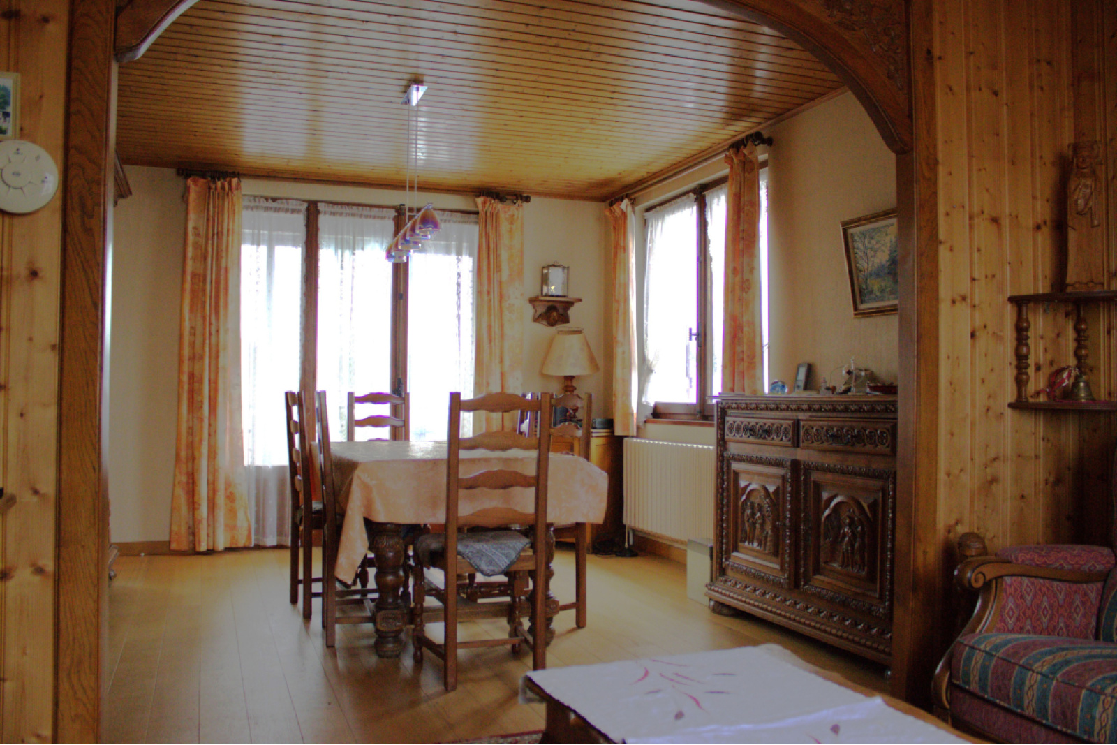 LE RUSSEY. Située dans un quartier calme et à proximité des commodités, maison au fort potentiel de 145m² habitables sur sous-sol complet, composée d'une cuisine aménagée, un salon-séjour avec cheminée, donnant accès sur un balcon-terrasse, 3 chambres, une salle de bains, un WC, à l'étage 2 grandes chambres, 2 greniers aménageables. Le sous-sol se compose d'une grande entrée, un garage, un atelier, un bûcher, une pièce débarras, une cave. Le tout sur un agréable terrain plat et arboré de +10ares. Nouveauté à voir rapidement!! Honoraires charge vendeur.