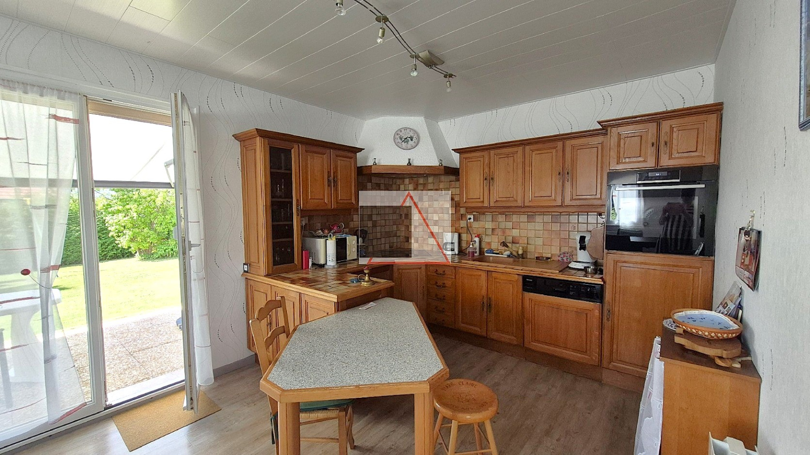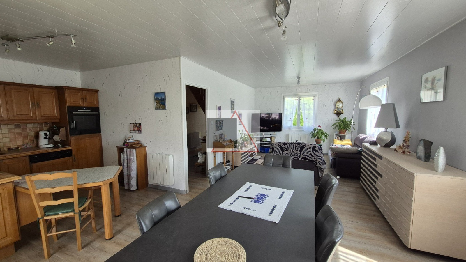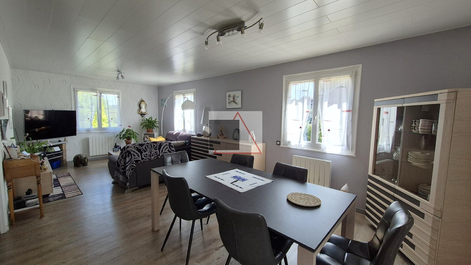 Idéalement située dans un quartier calme, maison des années 85 d'environ 105m² habitables composée au RDC d'une agréable pièce de vie avec cuisine équipée ouverte sur séjour de +37m² donnant accès sur la terrasse, très belle luminosité, une chambre, une salle de bains, un WC, une entrée, 2 garages, une cave, une lingerie et à l'étage, 2 chambres, un bureau et une salle d'eau avec WC. Le tout sur un terrain plat et arboré de 1173m². Honoraires charge vendeur